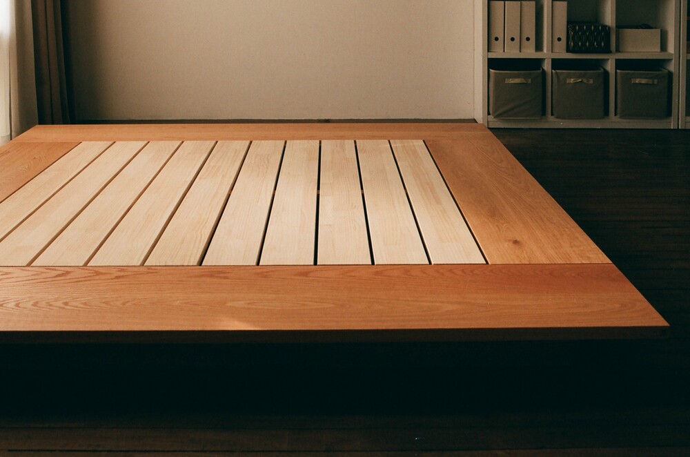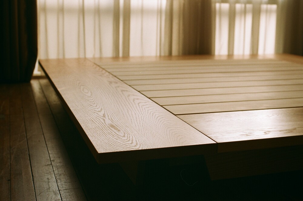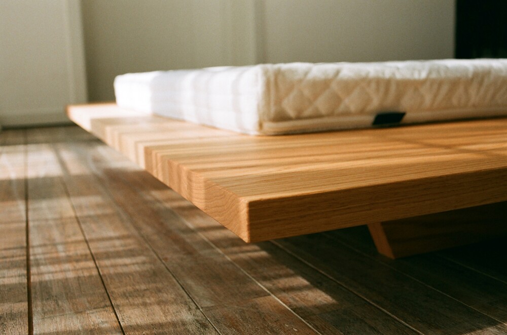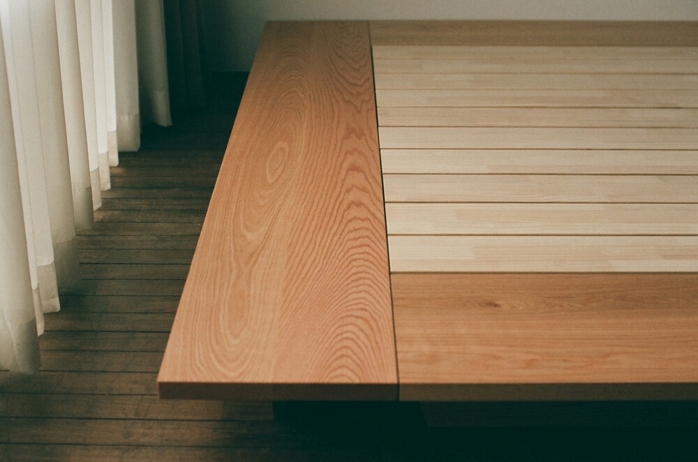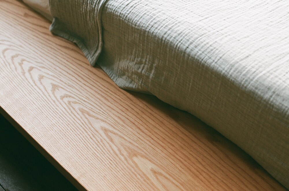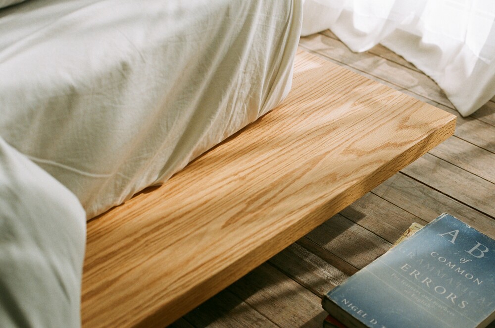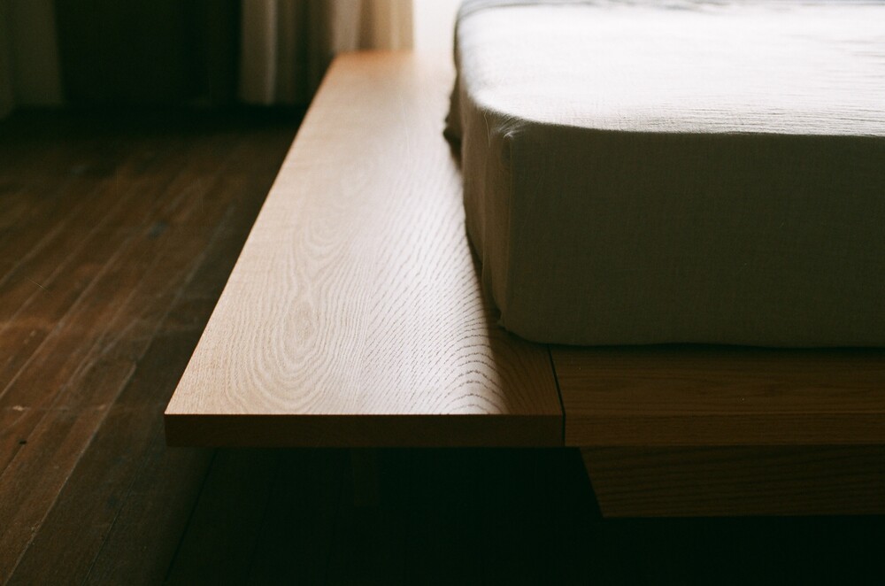 매트리스 좌우로 드러나는 넓은 나뭇결,