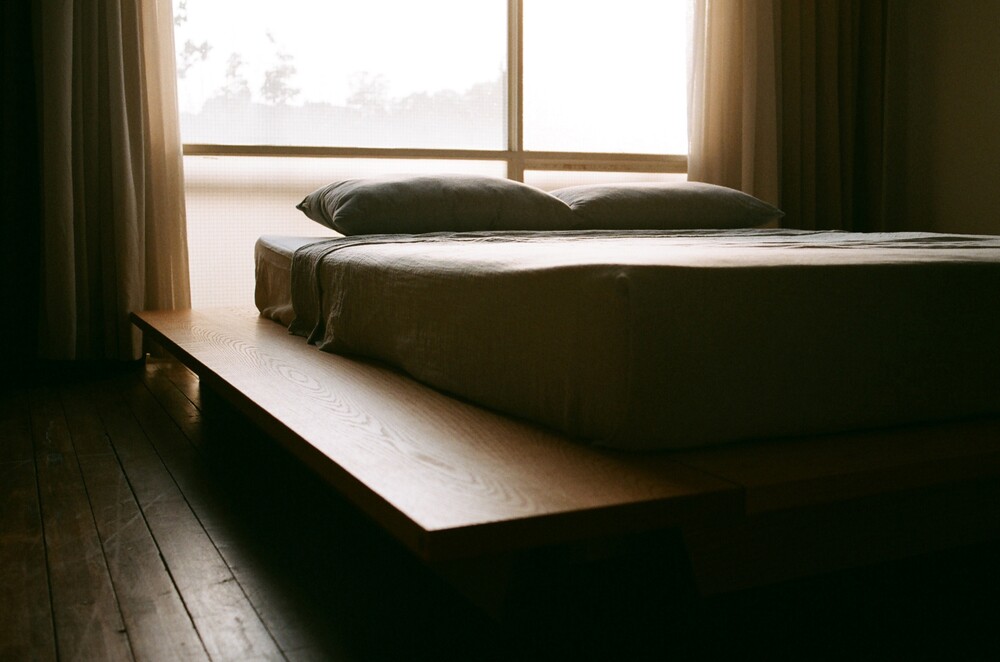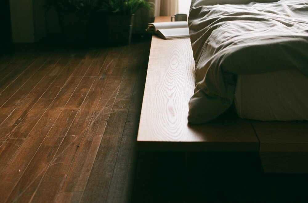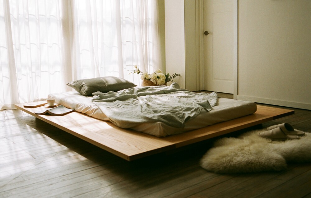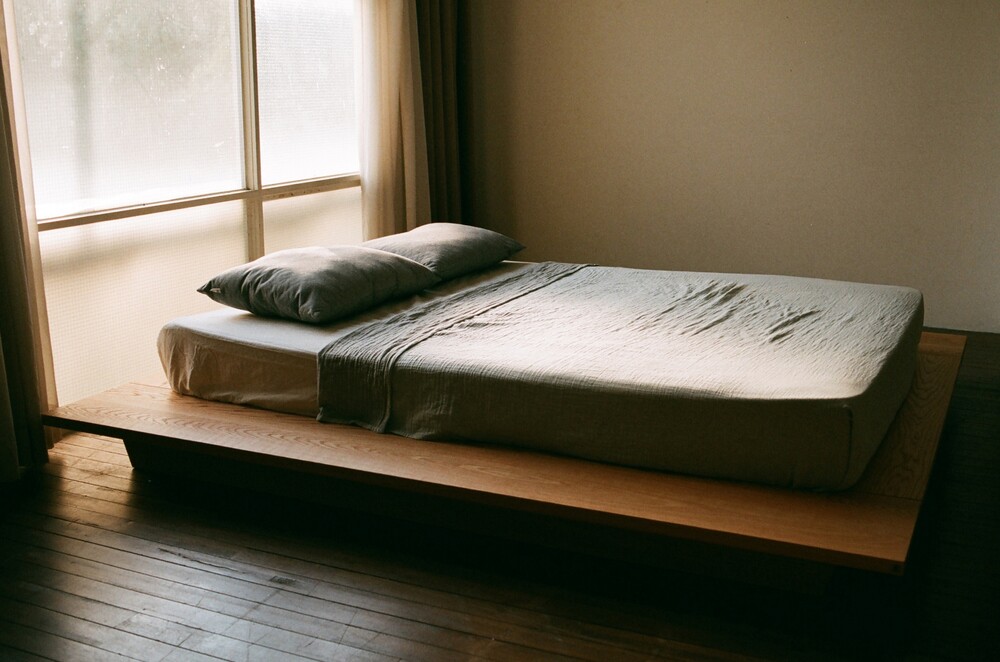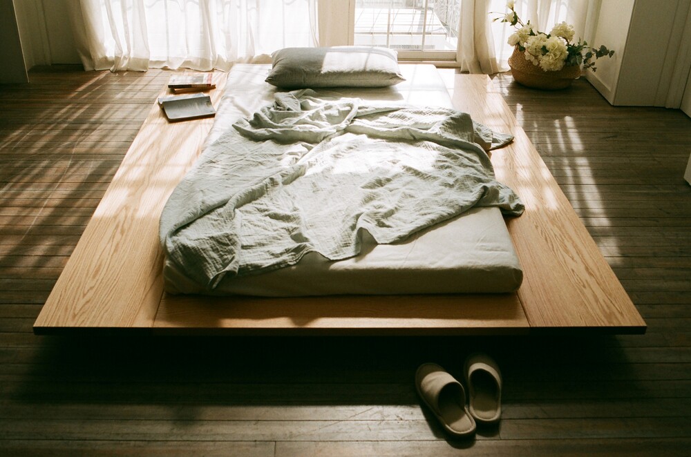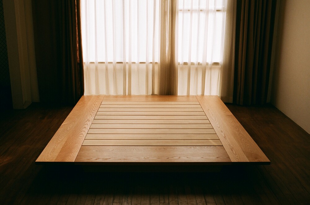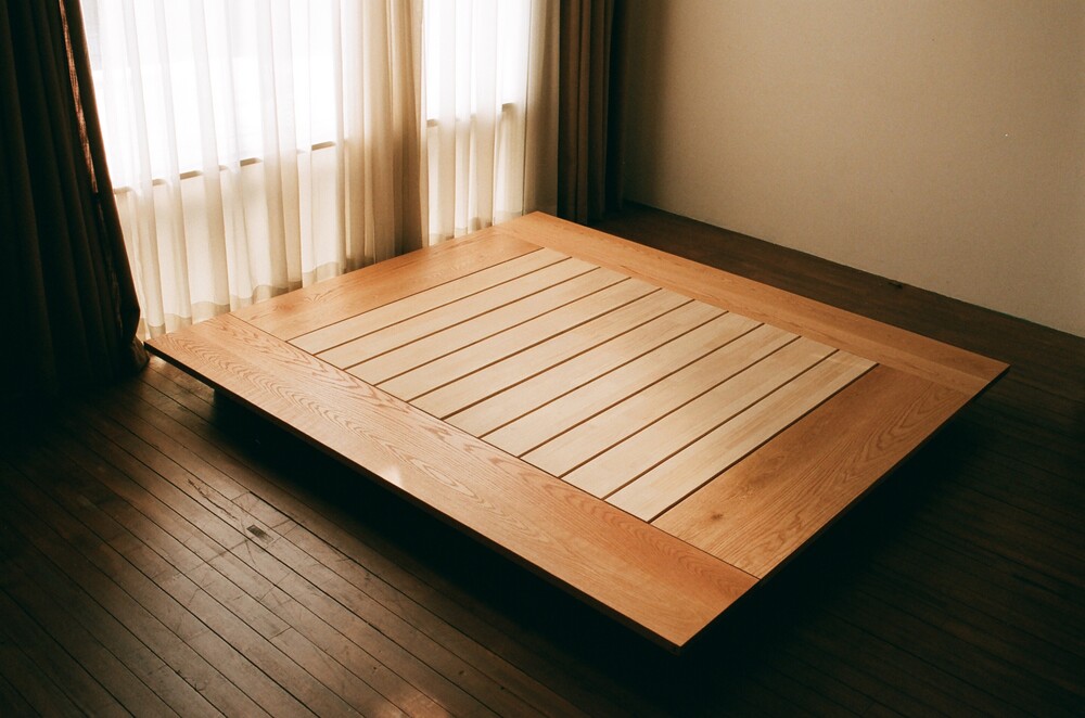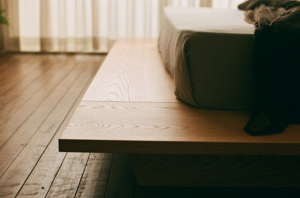 매트리스 좌우로 드러나는 넓은 나뭇결,