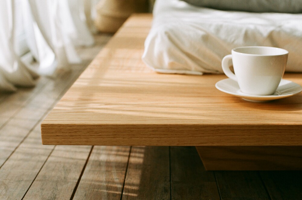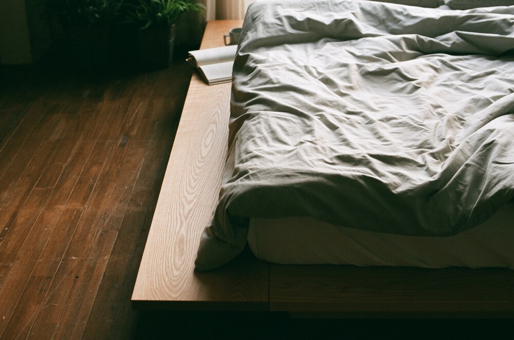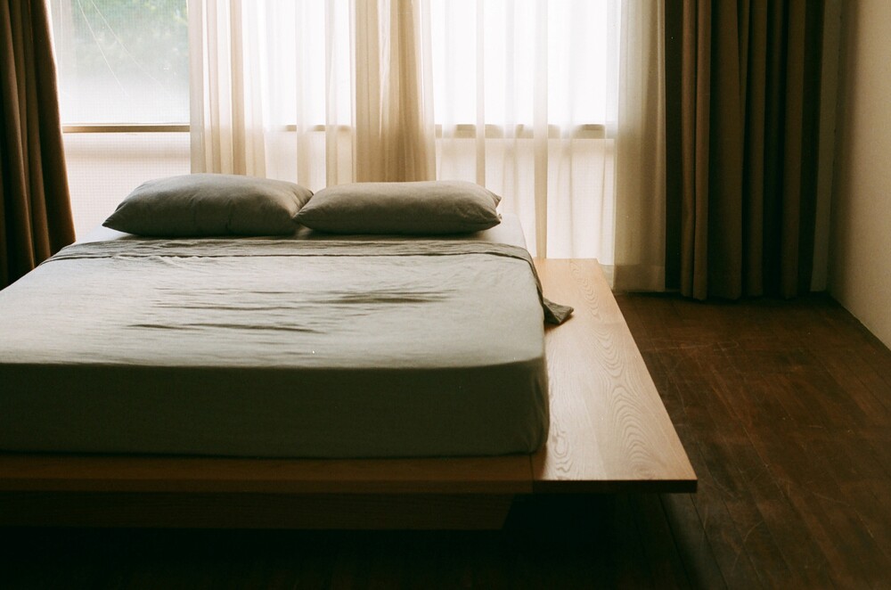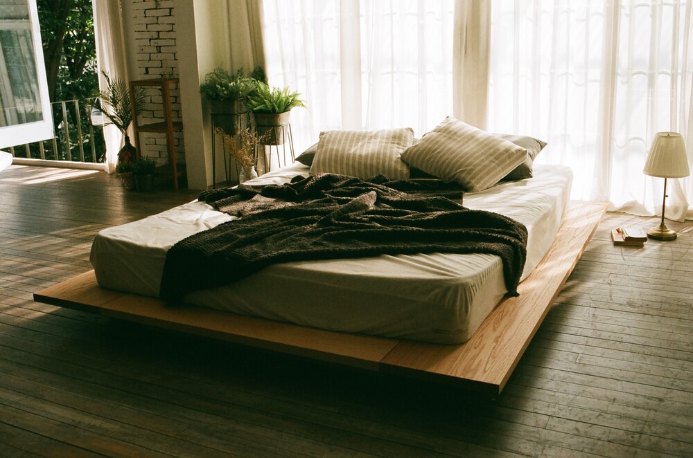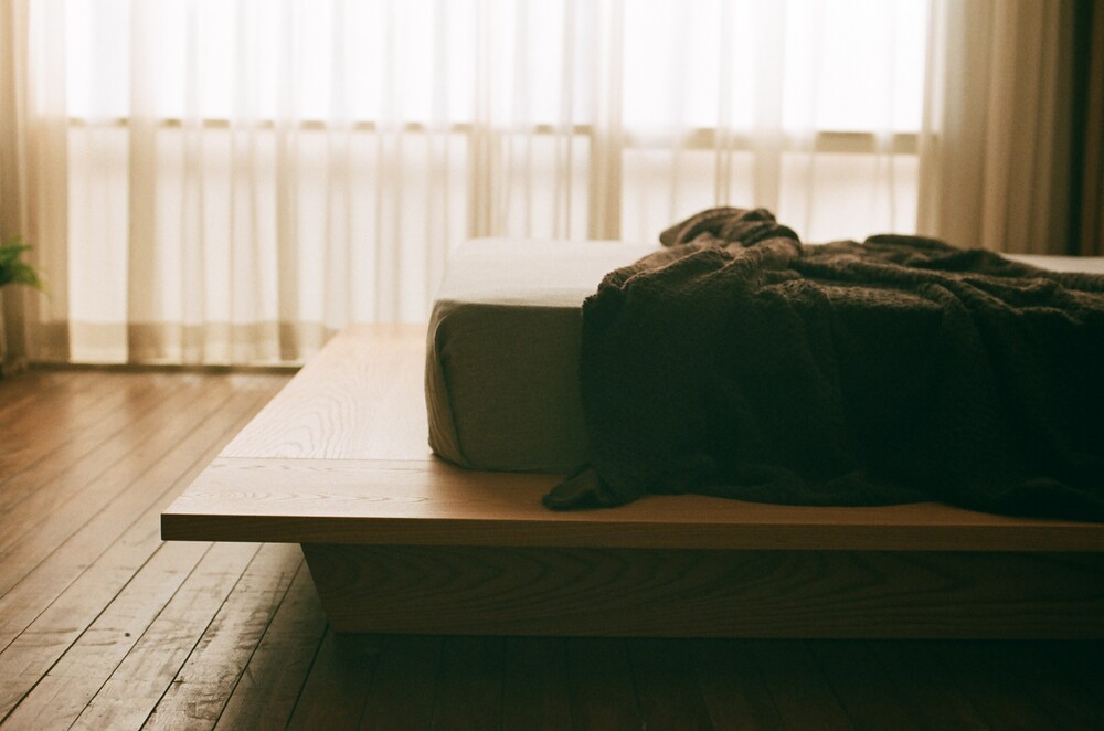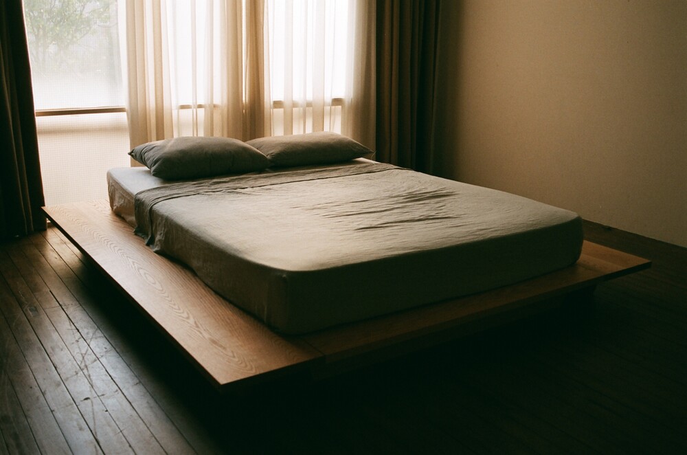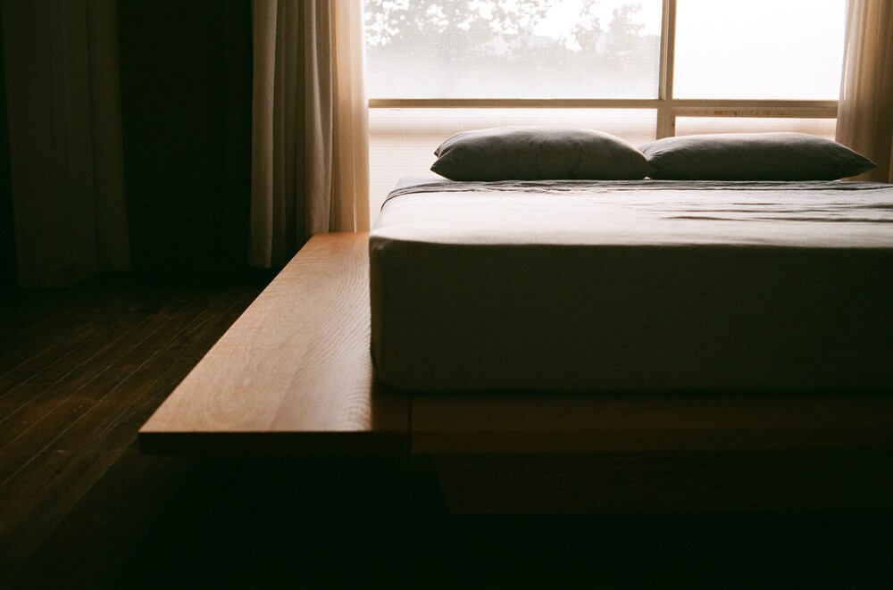매트리스 좌우로 드러나는 넓은 나뭇결,