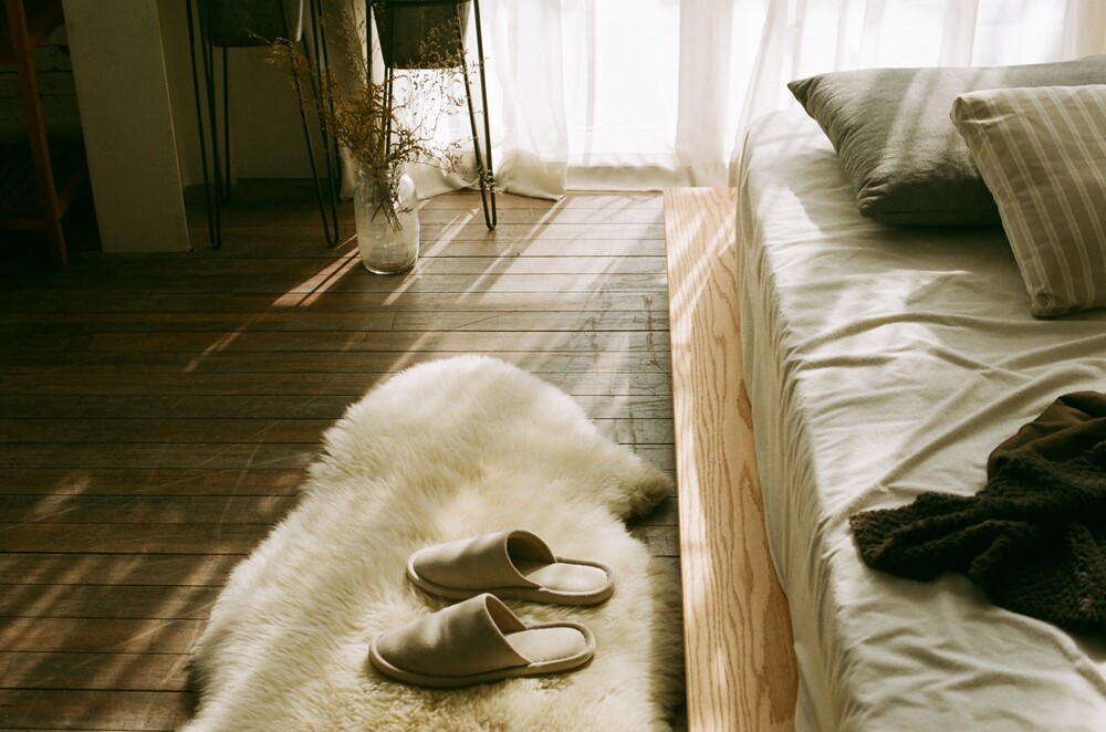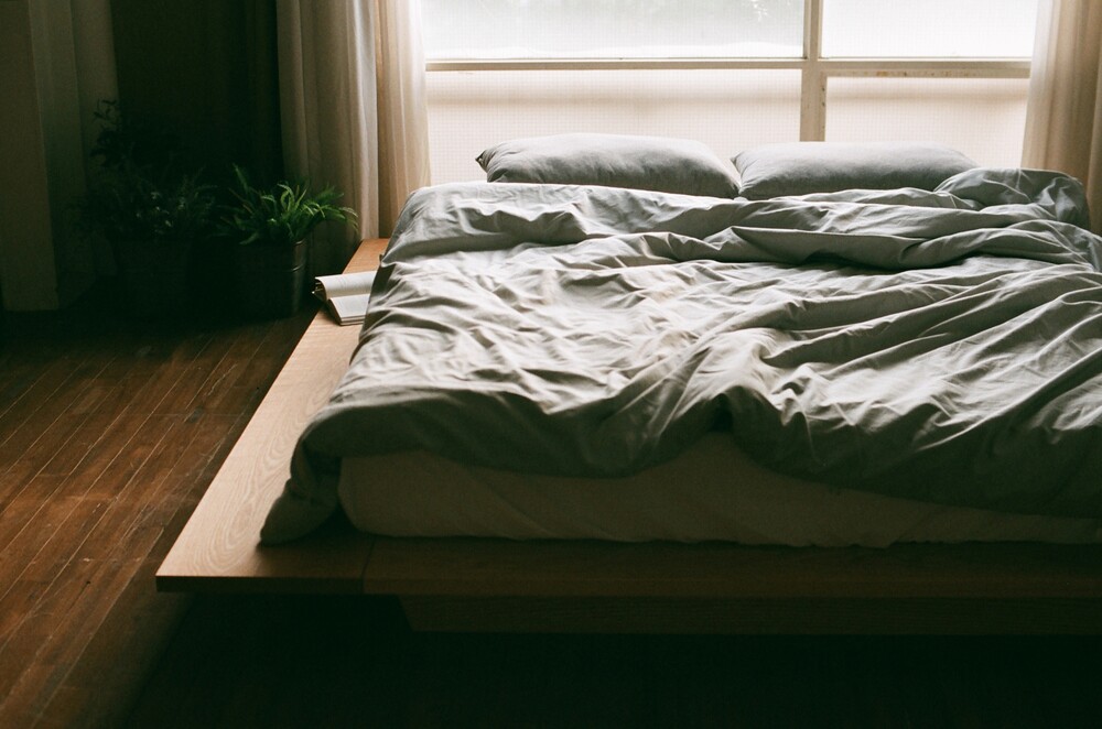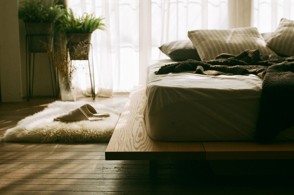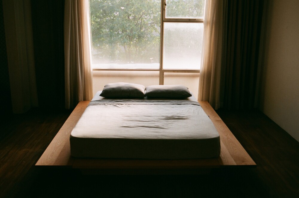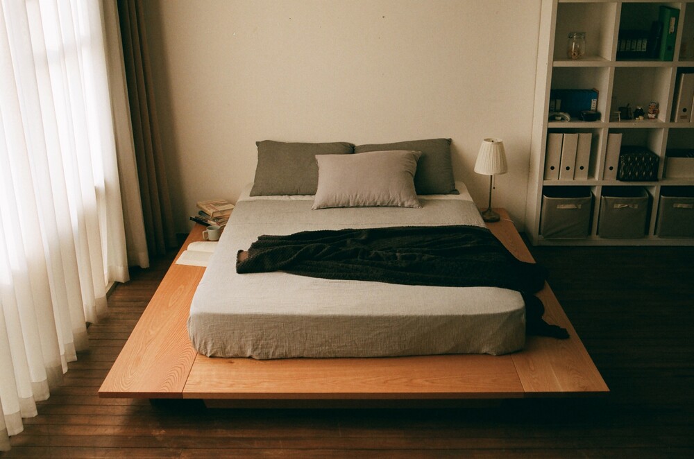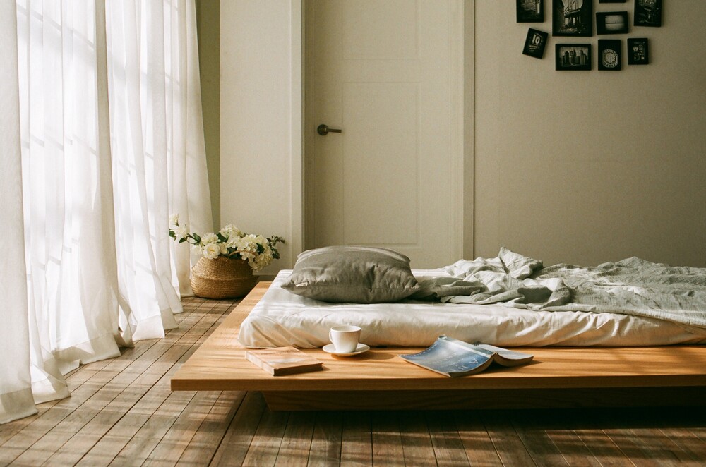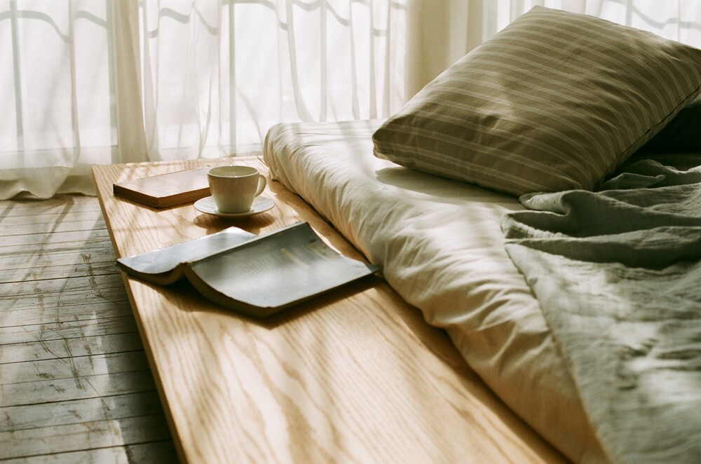 매트리스 좌우로 드러나는 넓은 나뭇결,
