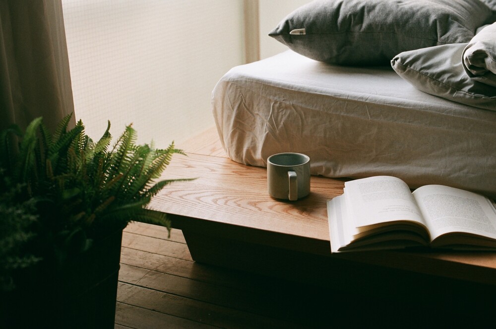 책을 얹고, 이불이 흘러내려도 좋을만큼.