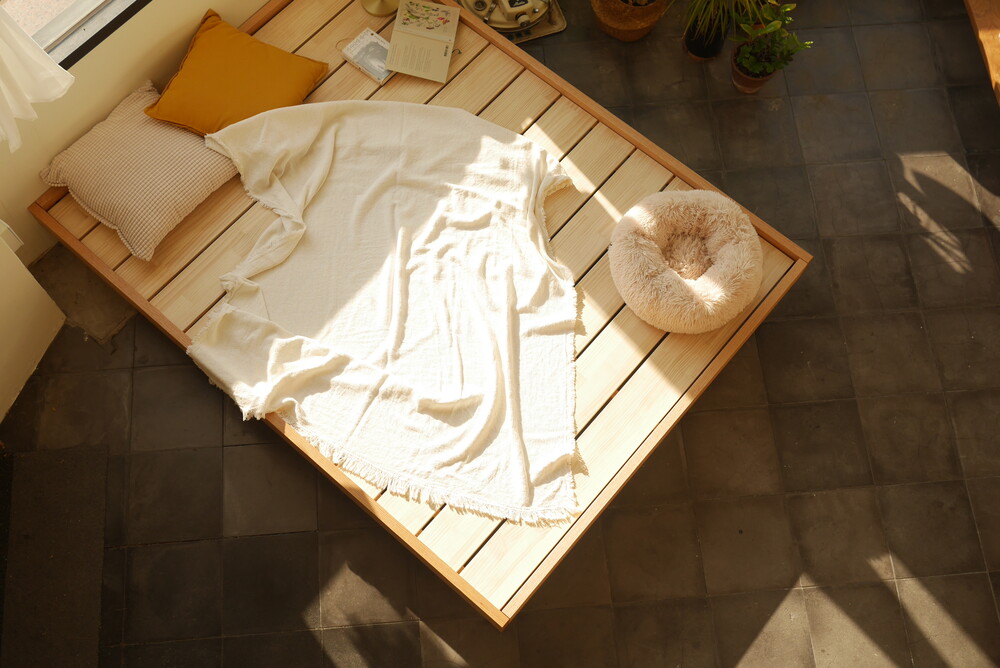 낮은 매트리스나 얇은 메모리폼을 놓아도 좋아요.