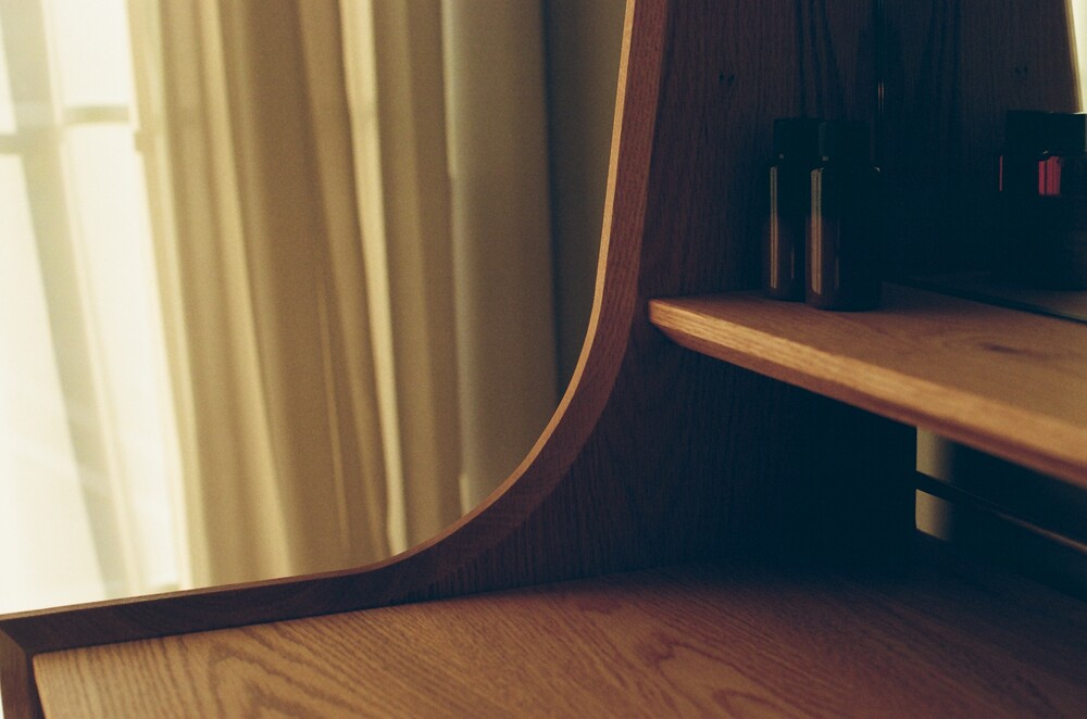부드러운 곡면의 안쪽선과 거울 앞 선반은