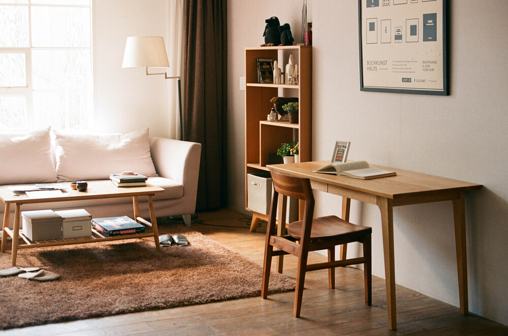 담백한 가구는 자리에 크게 구애받지 않습니다.