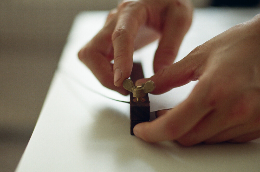두 개의 얇은 살을 황동 볼트로 고정하고