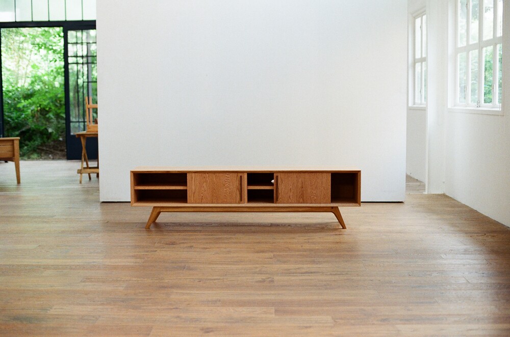 네 칸의 슬라이딩 도어로 디자인한 거실장입니다.