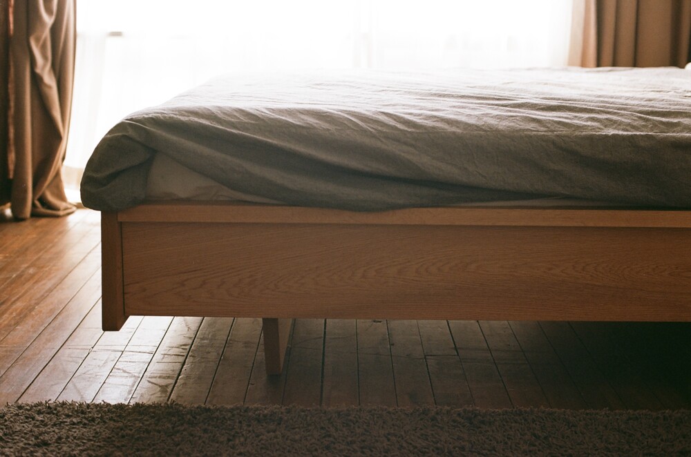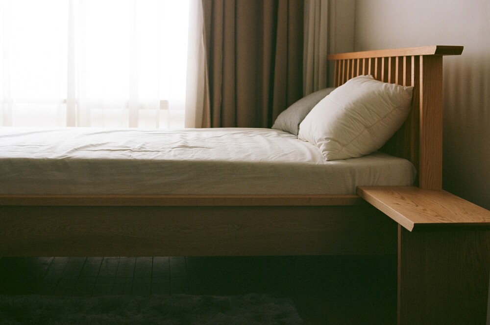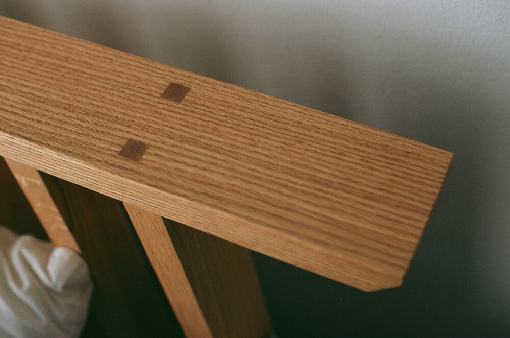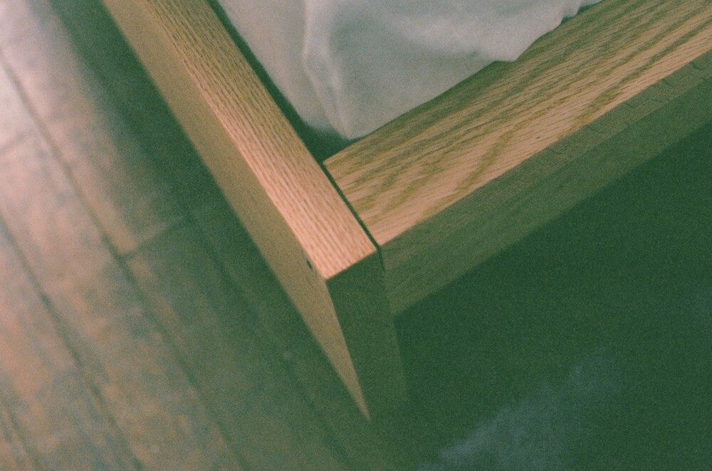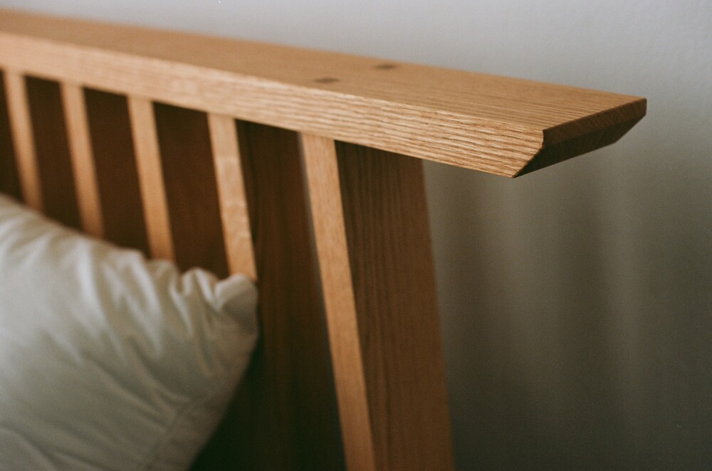 두께감 있는 나무를 아낌없이 쓴 침대입니다.