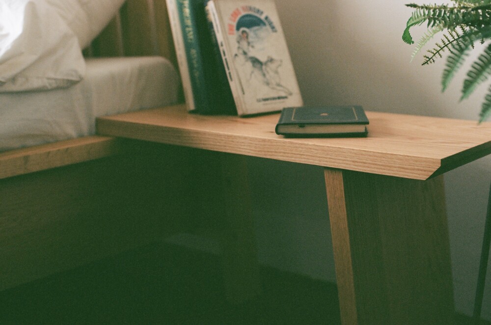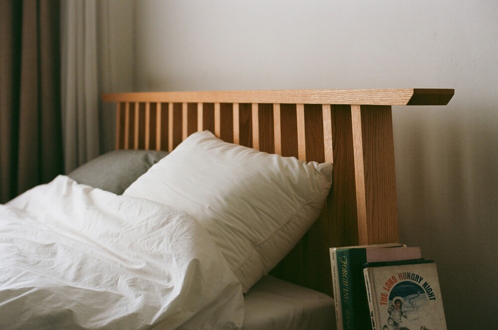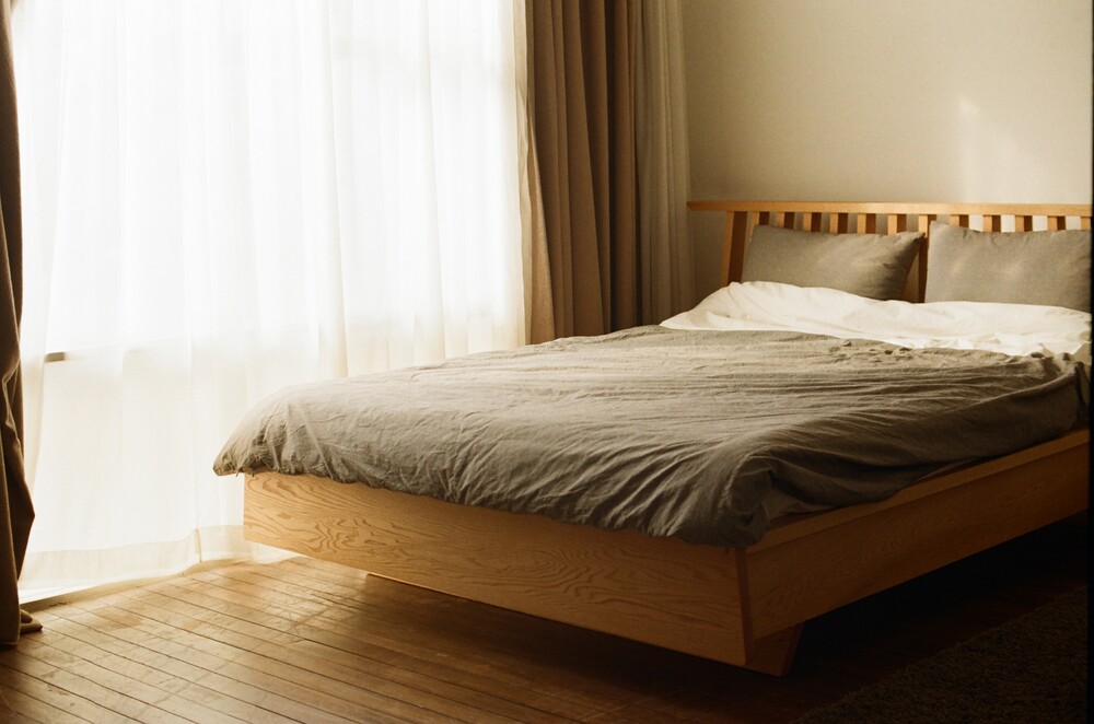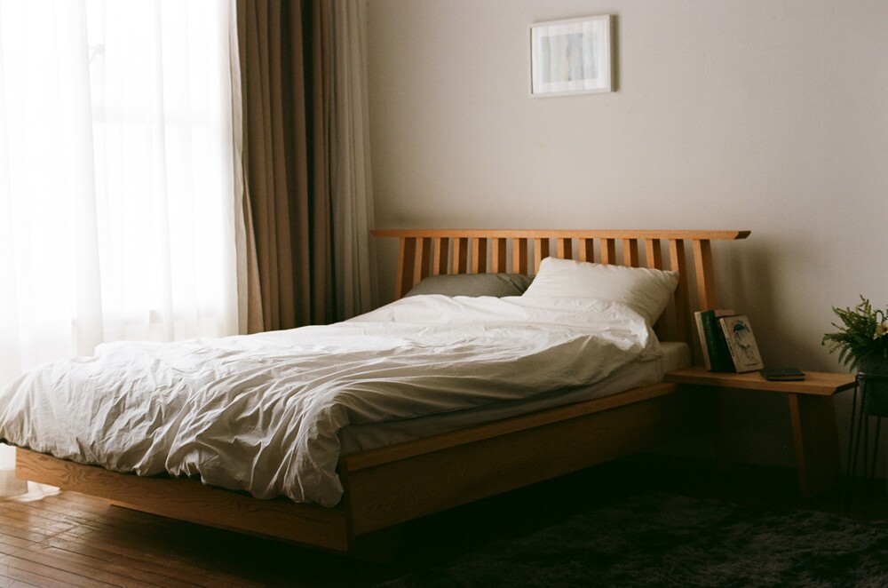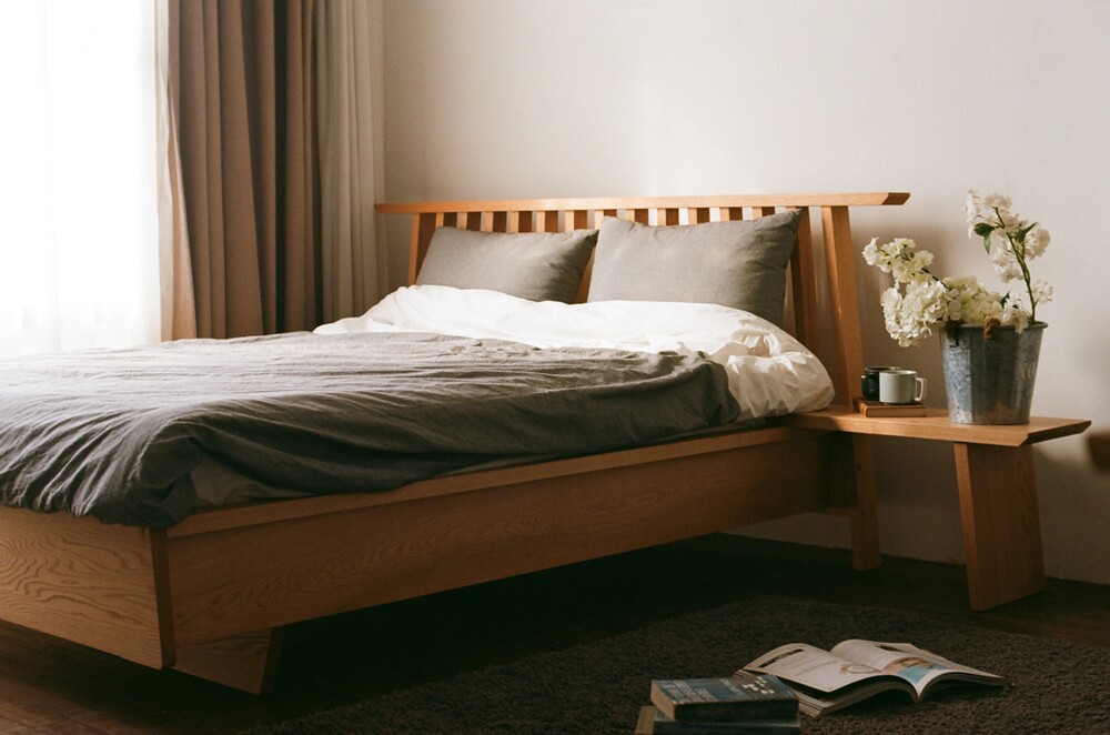 두께감 있는 나무를 아낌없이 쓴 침대입니다.
