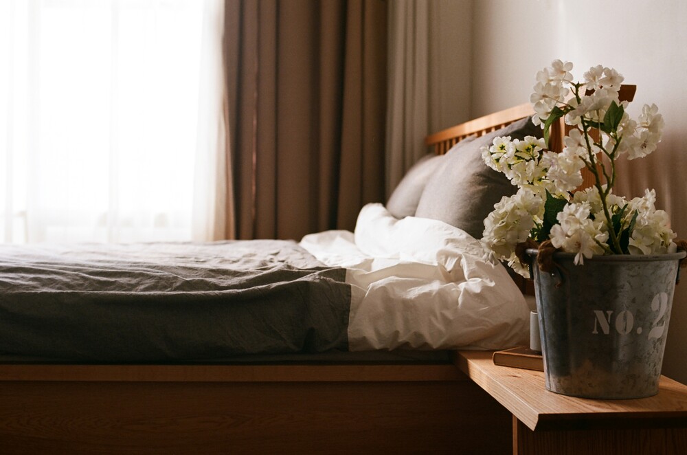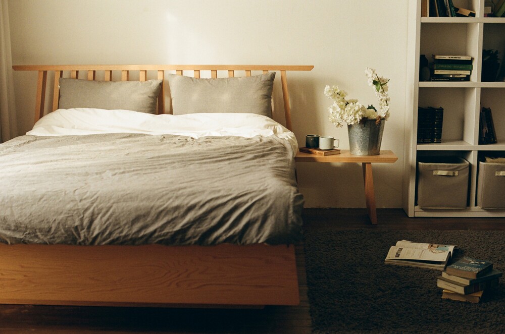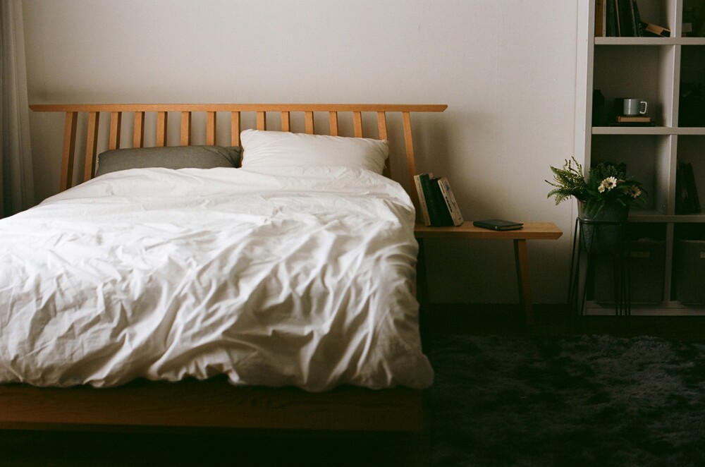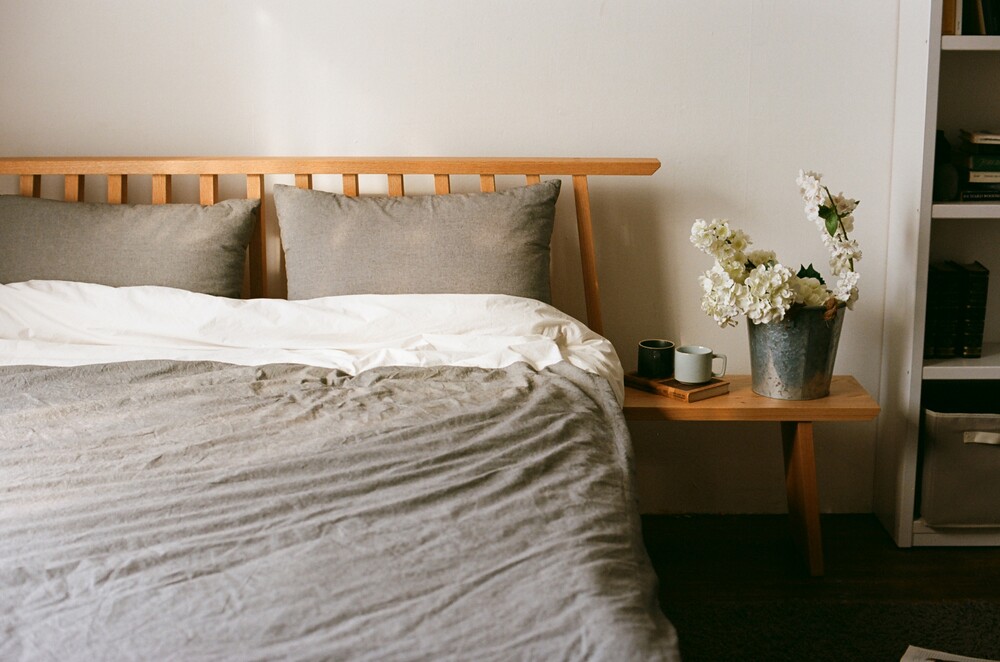 기하학적 매력이 돋보이는 빗살 헤드 침대.