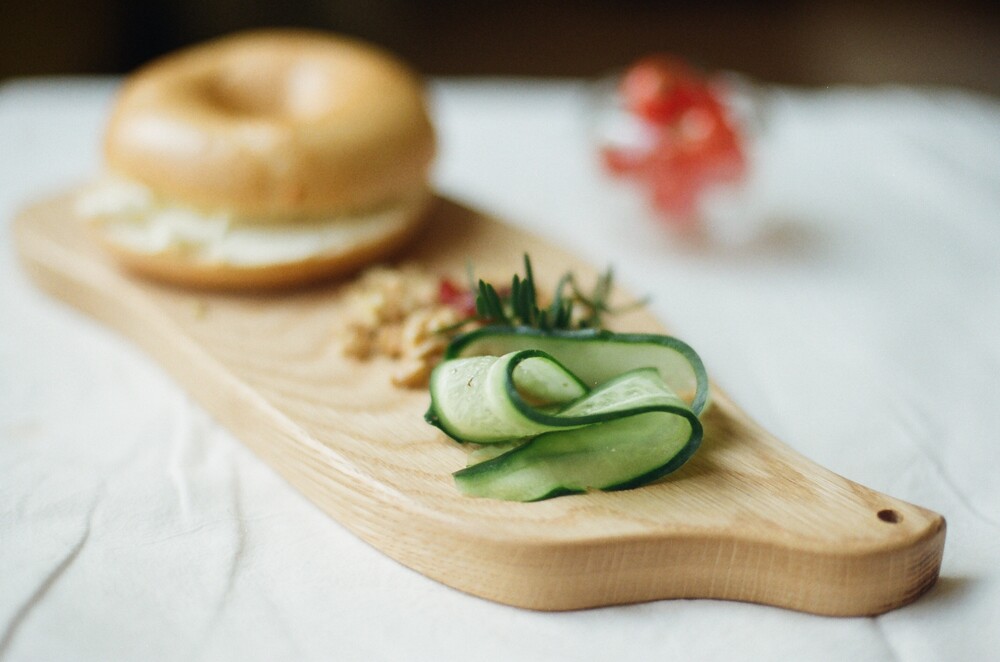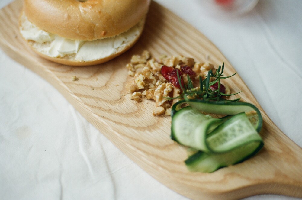 베이글과 크림치즈를 함께 놓아도 여유있고
